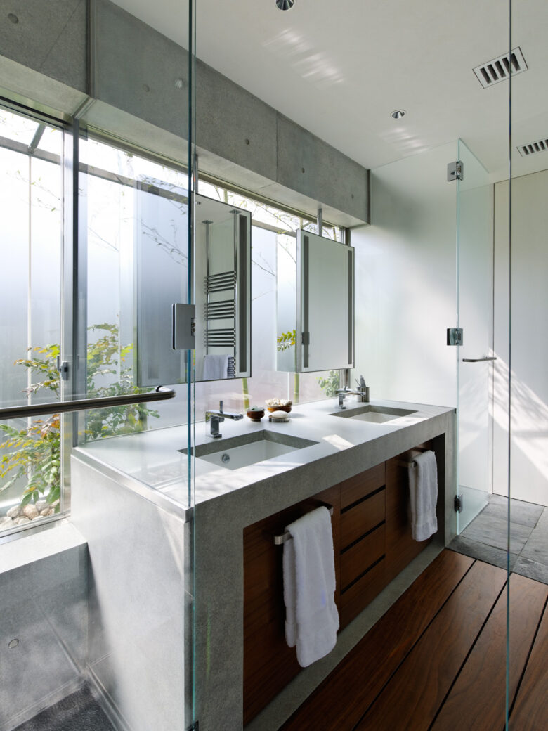 コンクリートの洗面とバスタブ - 西麻布・Indigo house